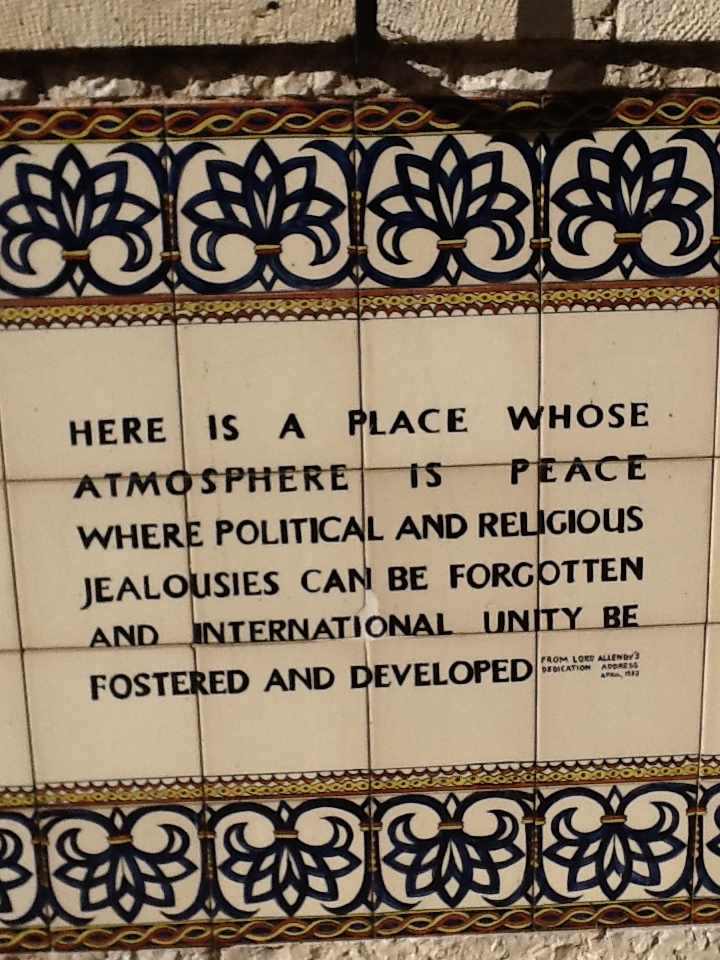 When those Village People sang WHY-EM-SEE-AY, it’s clear that they had never been to Jerusalem. The YMCA in Jerusalem is pronounced “YIMKA.” It is housed in a massive Byzantine-like building on King David Street across from the famous King David Hotel (where the rich and famous stay). When the Y was dedicated in 1933, Lord Allenby spoke the words above as part of his speech: “Here is a place whose atmosphere is peace, where political and religious jealousies can be forgotten, and international unity fostered and developed.” Perhaps he was prescient, because the YMCA in Jerusalem is one of the few places where one can see coexistence in action. It is a significant meeting place for the city’s divided Christian, Muslim and Jewish populations, and it has a joint daycare program for Jewish, Christian and Arab Israeli children.