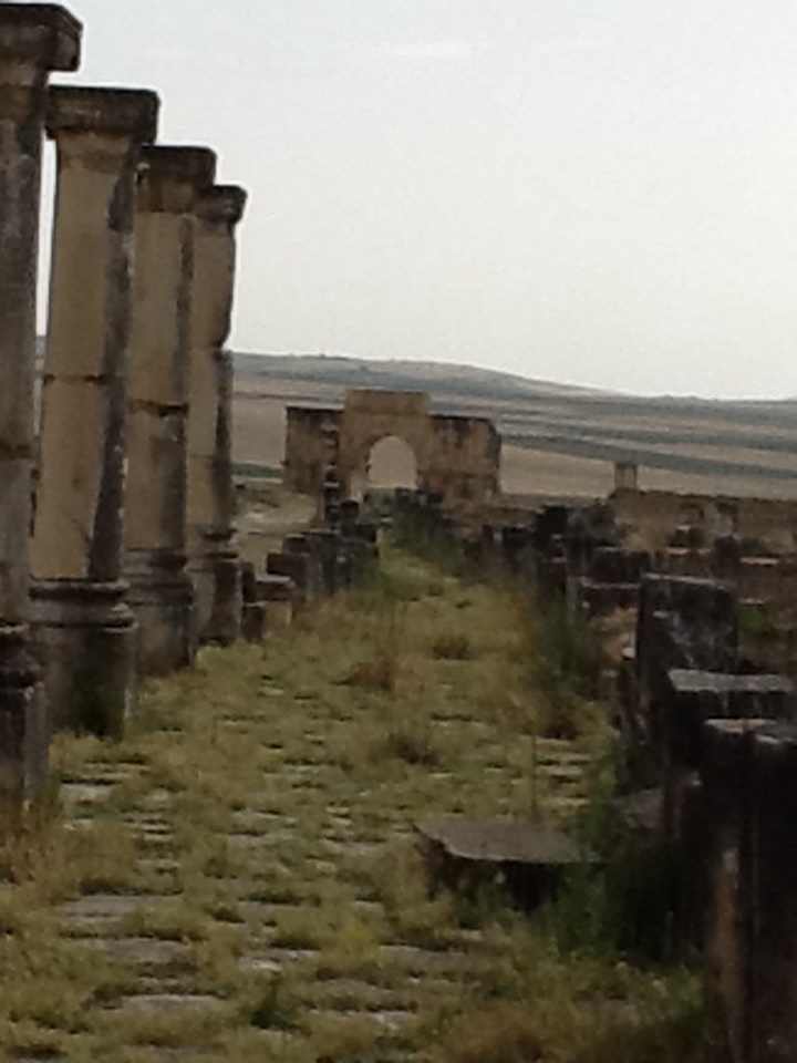 From Rabat (which we will be visiting again later in the week), we drove past Mouley Idris, the holiest site in Morocco to which a pilgrimage is made every year, en route to Volubilis. Volubilis is a UNESCO World Heritage site, founded in the 3rd century BCE, which became an important outpost of the Roman Empire. When the Romans left, later generations of Moroccans who did not know the Roman history, called the site “Pharaoh’s Palace,” a reference to the Pharaoh we know from the Book of Exodus and the story of Moses. There was apparently a Jewish community in Volubilis and we saw one tombstone from there inscribed with Hebrew letters. I’m not one usually interested in ancient ruins, so when I say this place was breathtaking and mindboggling, believe me, it was — you would surely think so, too. Again, the photos won’t do it justice since you won’t see the vastness of the site.