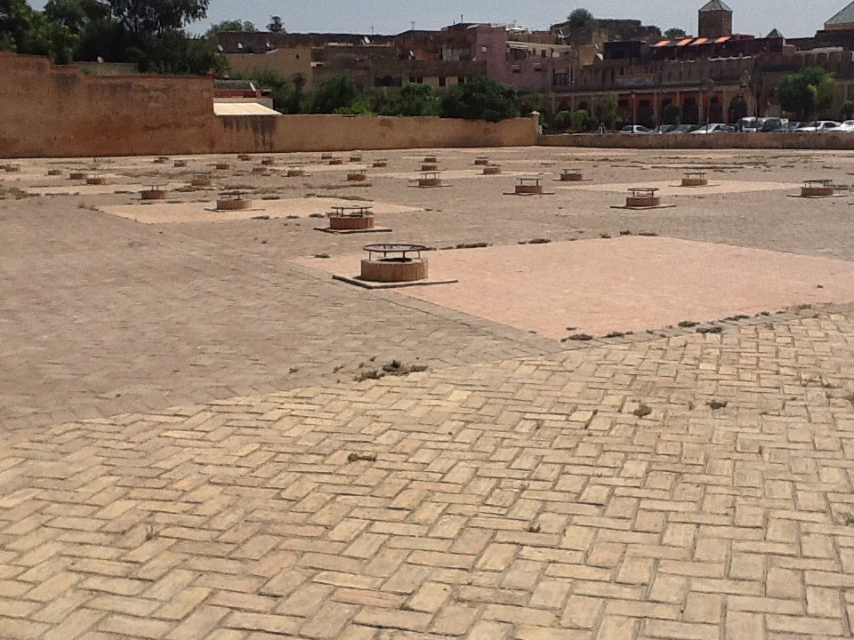 Meknes, located on a fertile plain north of the Middle Atlas, was the most fortified city in Morocco and was the home of King Moulay Ismail in the 17th century, a long-lasting king who served on the throne for almost 50 years. He used black Africans as slaves and soldiers, maintained a calvary of 12,000 horses, and turned a blind eye to Moroccan piracy, since he was the beneficiary of the captives (mostly white) on-board the pirated ships. When ambassadors would come from the Vatican or other countries to ransom their citizens, he benefited from their payments. Some of the prisoners converted to Islam; today anyone whose last name is Allej (?) is known to have Christian origins. On our tour today we saw his granaries, his stables, his dungeon, and his mausoleum. (The history of Morocco and piracy is quite interesting. It actually plays into the Moroccan belief that they are the first nation to have recognized the newly-formed United States of America in 1776.)