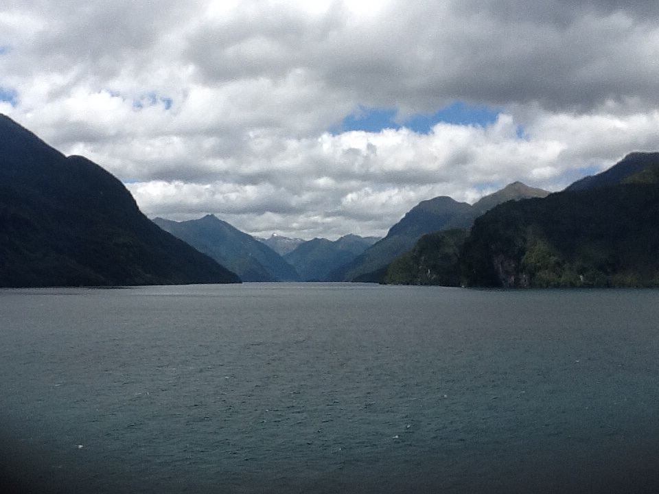 After being at sea for 2-1/2 days without spotting land, we reached Fjordland National Park, cruising through three beautiful fjords. Our Maori friends onboard (a cultural-educational troupe called Te Kapu) performed  a welcome-to-the-land ceremony to celebrate our official arrival to New Zealand, though we didn’t disembark. They have offered a number of fascinating workshops onboard. Klutzy me has mastered a hand-eye coordination game called titi-torea in which I threw two short sticks in quick succession to my partner to catch while she threw two back at me (which I caught!). We actually mastered several lengthy volleys with different rhythms, and I believe this will be a hard-to-beat highlight of the cruise for me, seeing as it causes me to totally revise a hardwired (and obviously incorrect) notion of myself.