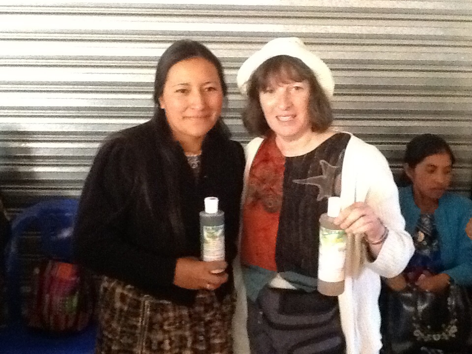 Me and midwife Juana displaying some of her beauty supply products –I bought chamomile shampoo