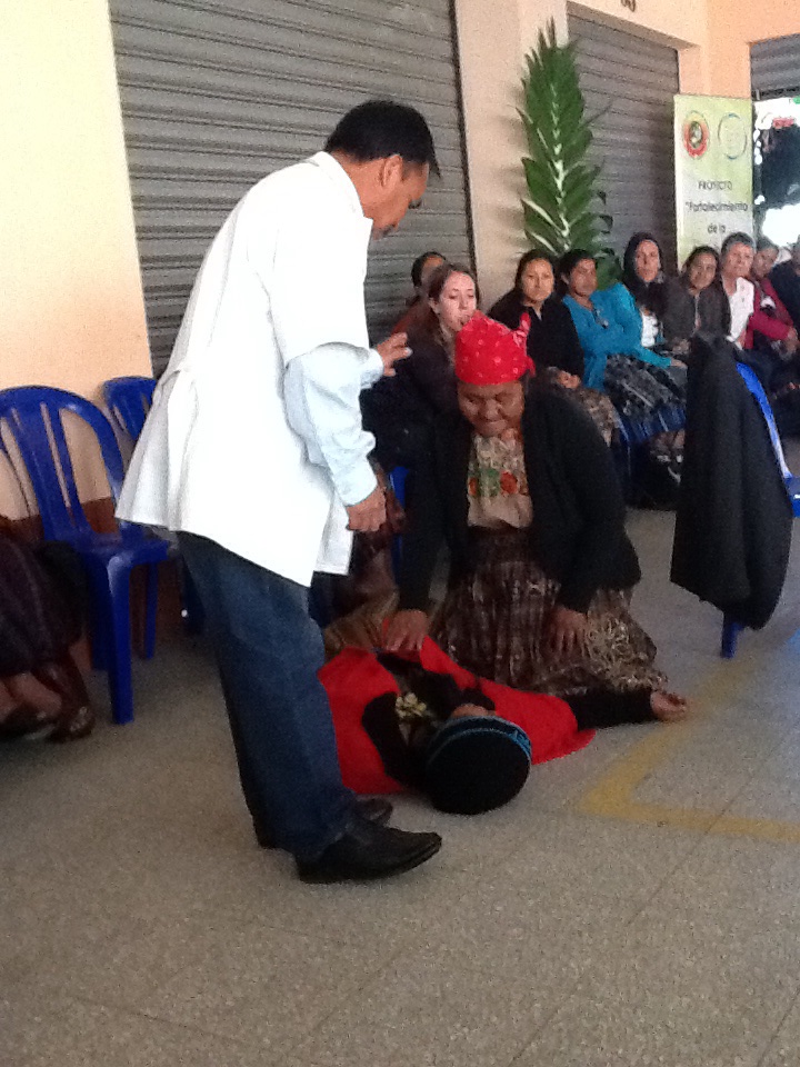 Acting out discrimination against indigenous women. The man playing the doctor is a midwife and paramedic