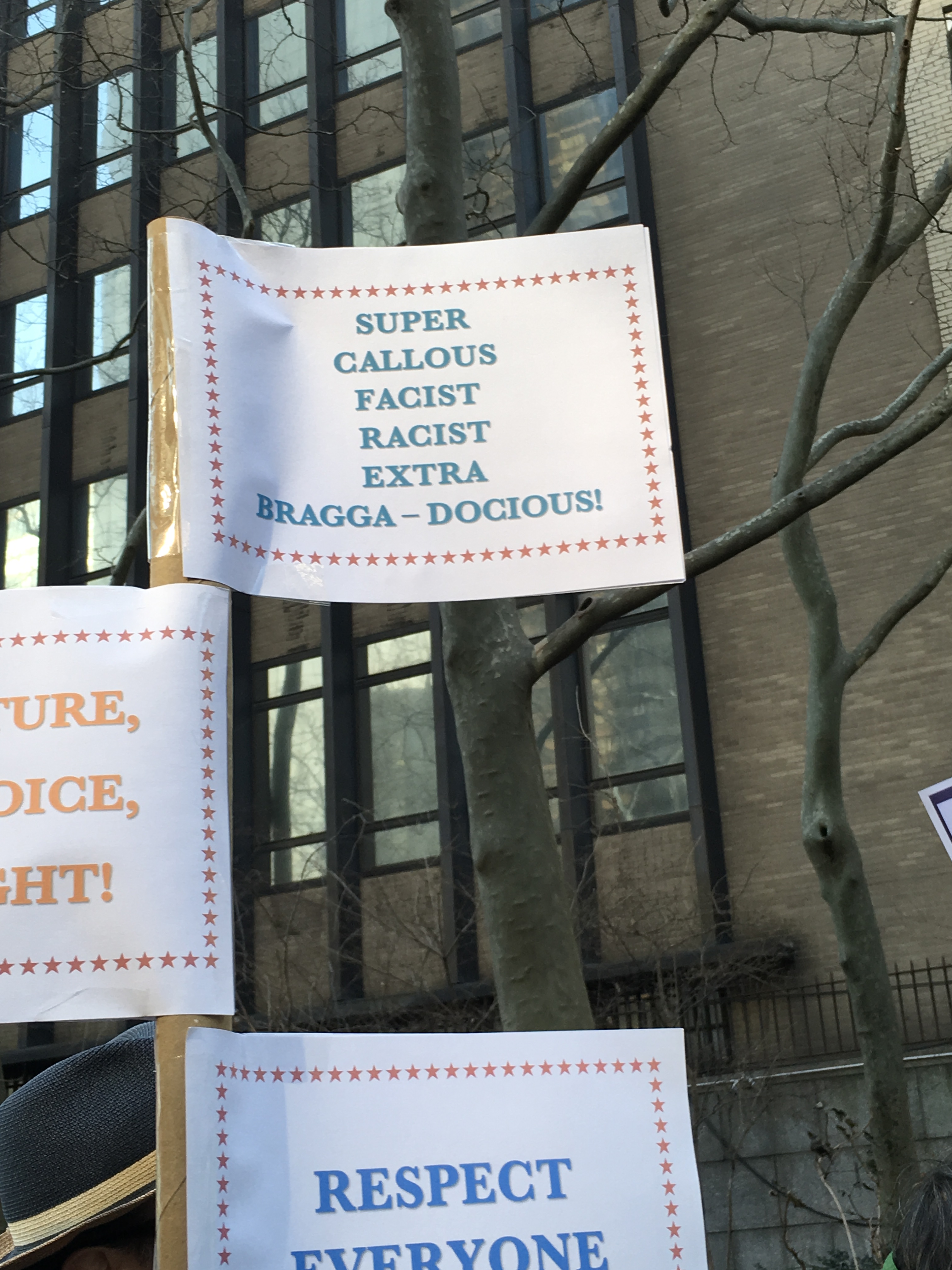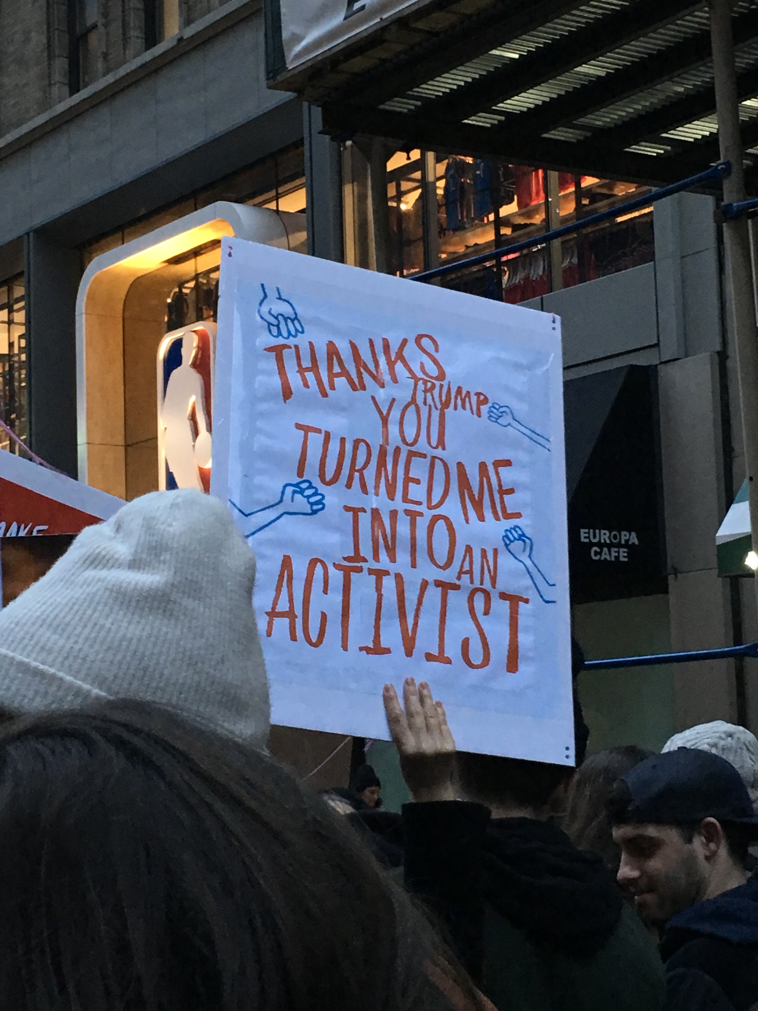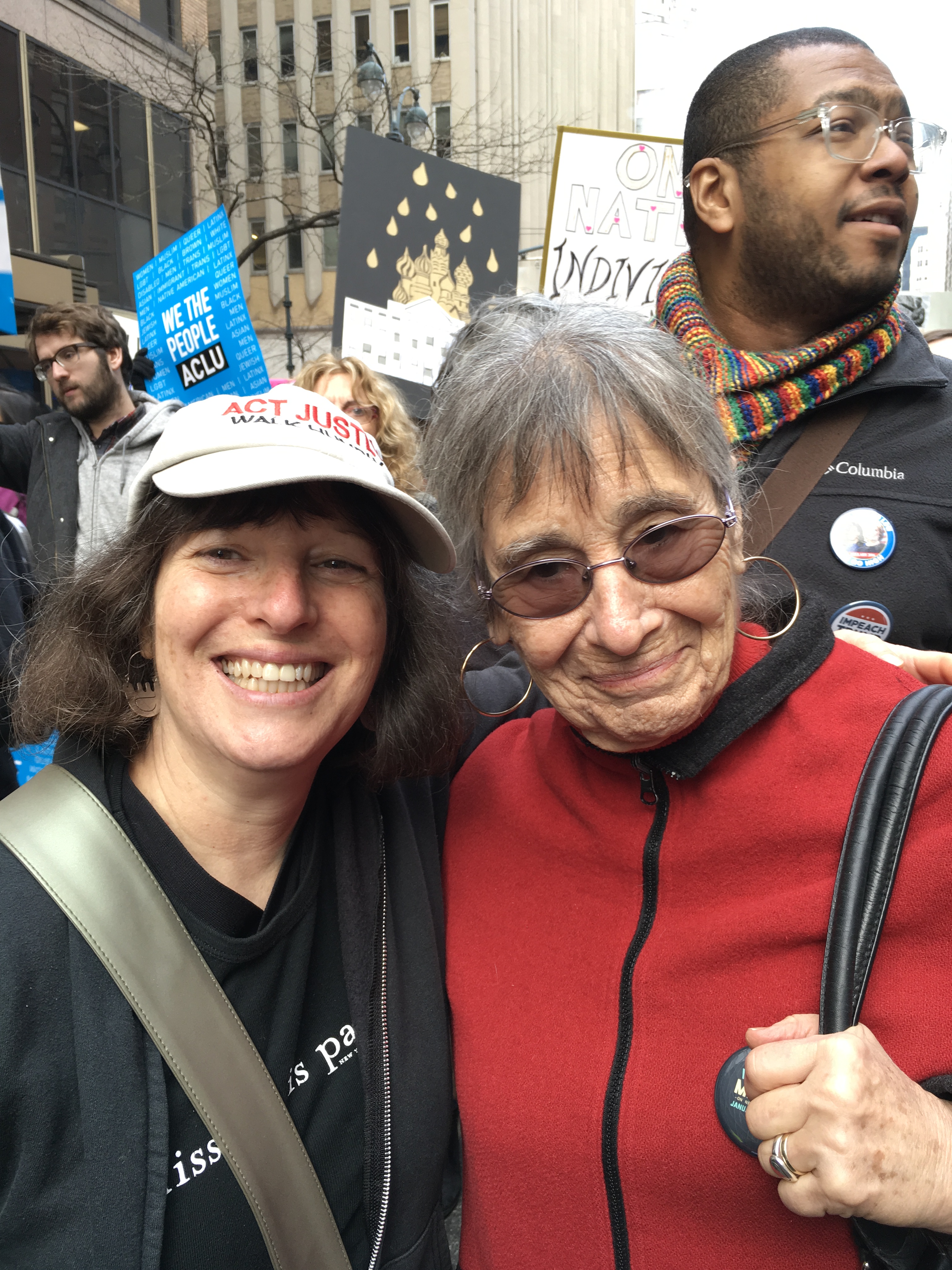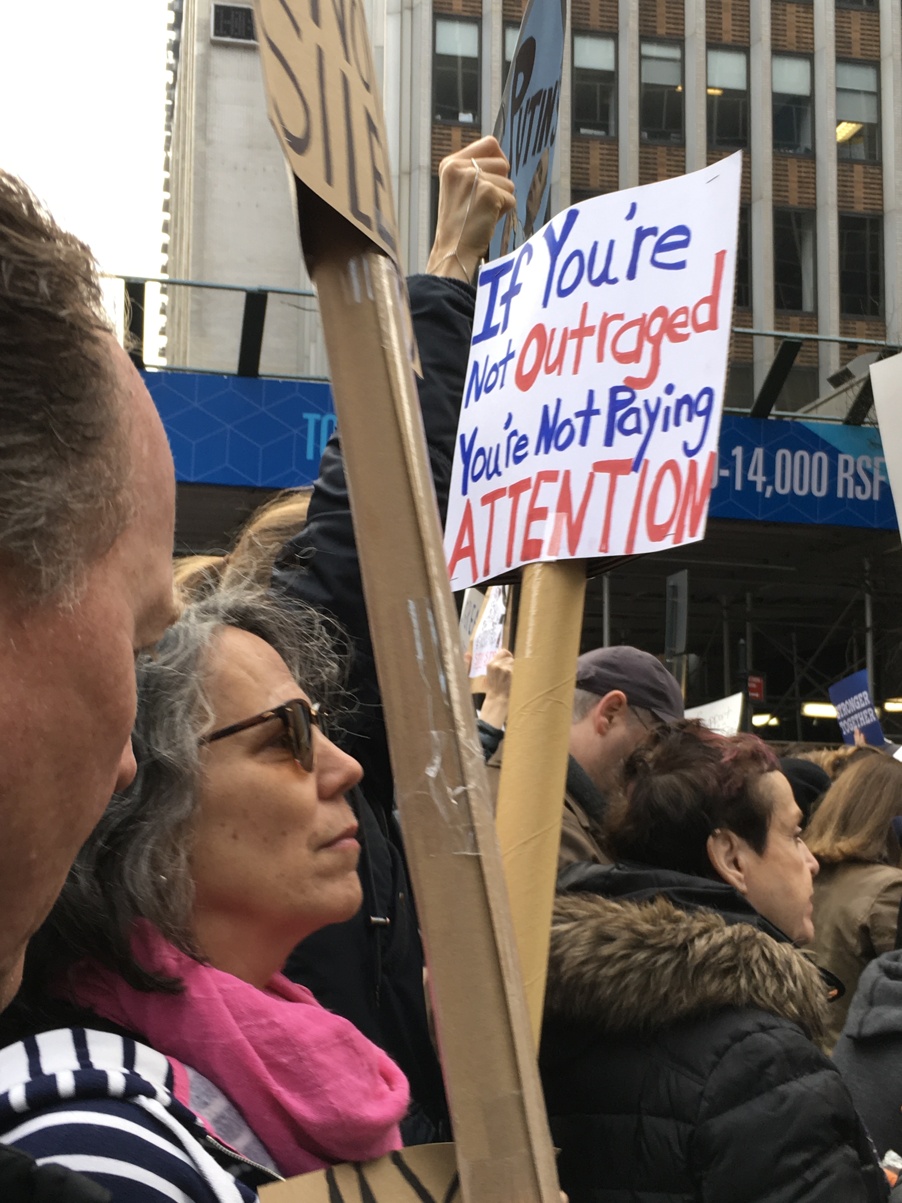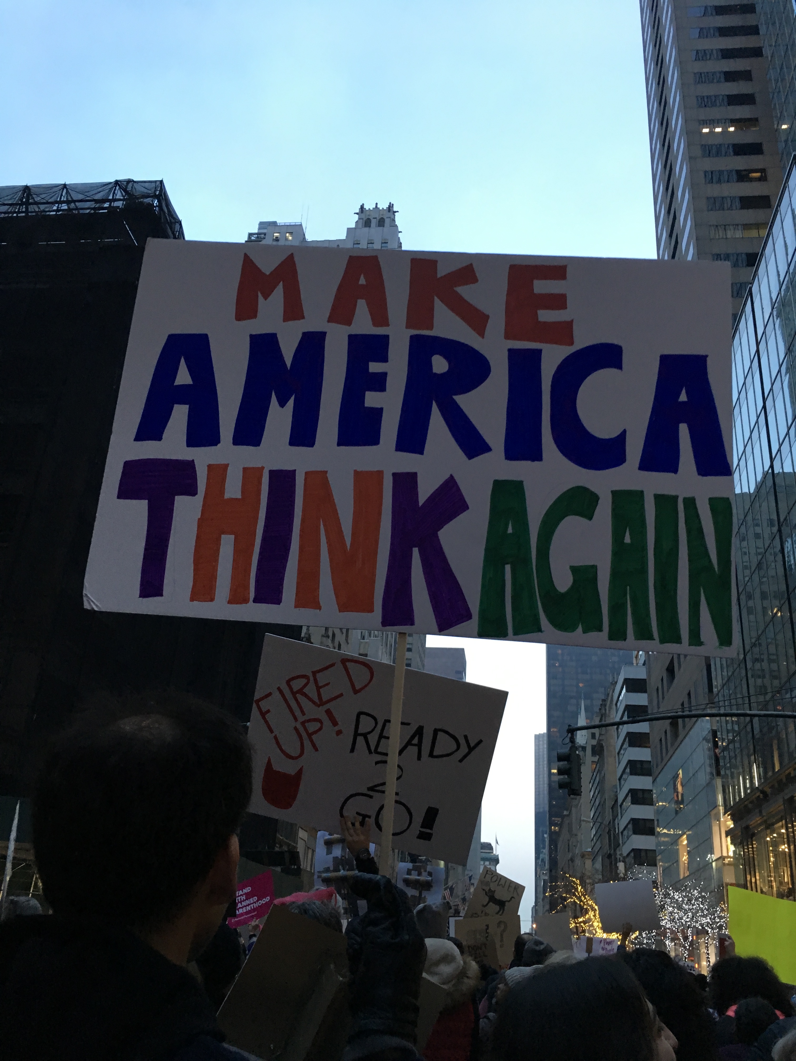 As we walked, the chants would come in waves, energize us for a time before fading out, replaced then by friendly chit-chat amongst the walkers who were thrust together in tight space. The crowd in NYC was 4x expectations (400,000 rather than the expected 100,000!), and the going was slow, inch by inch. And then another chant would rise, and we’d join in, and sing. Singing as protest is a time-honored and holy tradition.