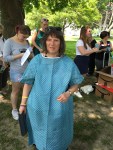 Dressed in hospital gown