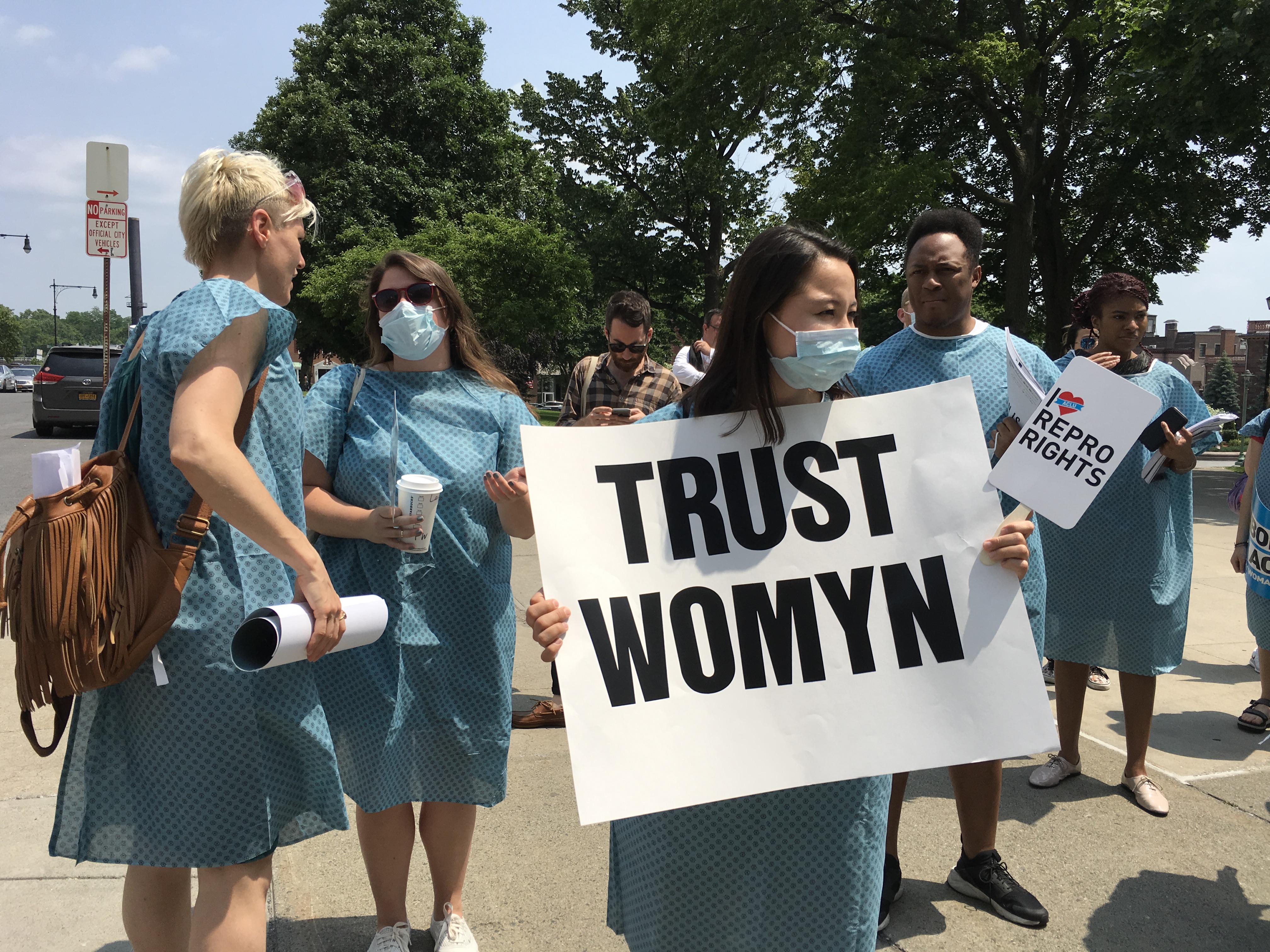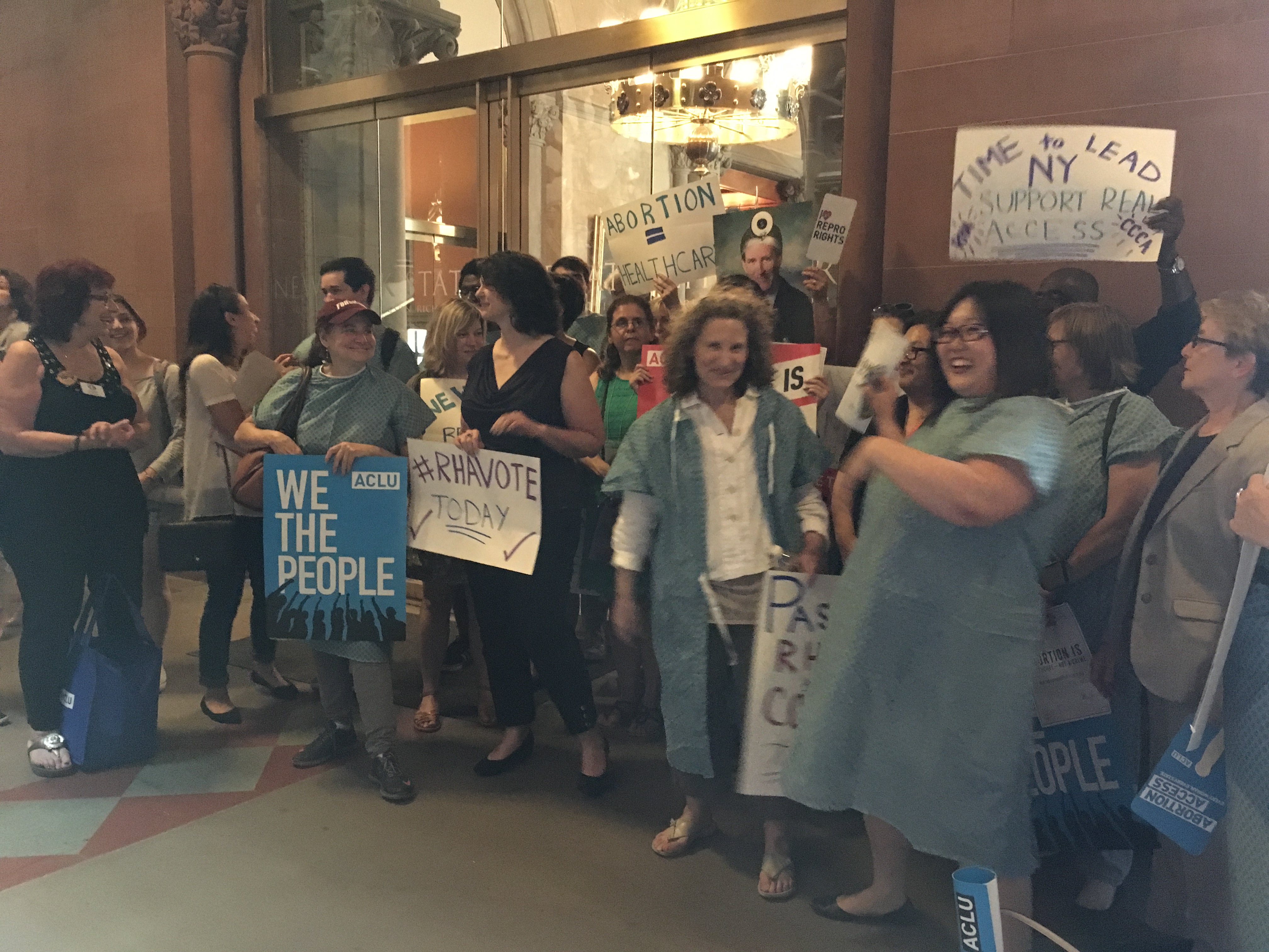 Margaret Atwood’s novel The Handmaid’s Tale was considered a dystopian fantasy when it was published in 1985. Now it appears downright prescient — about a totalitarian theocracy that has overthrown the U.S. government, subjugating women and women’s reproduction. Last Tuesday I went to Albany, my state capital, to lobby on behalf of the Reproductive Health Act. (Unfortunately, NYS has an antiquated abortion law that, should Roe v. Wade fall, would criminalize abortion and leave New Yorkers in a very precarious position.) This is the fourth time I have lobbied in Albany on this bill since January, but this time, I was supposed to go dressed as a handmaid! This is an action that is taking place all over the country on behalf of women’s reproductive health law, as depicted in this chilling clip from Kansas City, MO. Ultimately, we did not dress as handmaids, but in hospital gowns, sending the message that abortion is healthcare, not a crime. Instead, the actions as handmaids will take place tomorrow, Tuesday, and Wednesday in Albany, during the last three days of the legislative session. If you want to go, sign up here. It should be truly amazing and powerful.