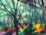 The tree is a shadow, not part of the mural itself (Blvd. St. Laurent).