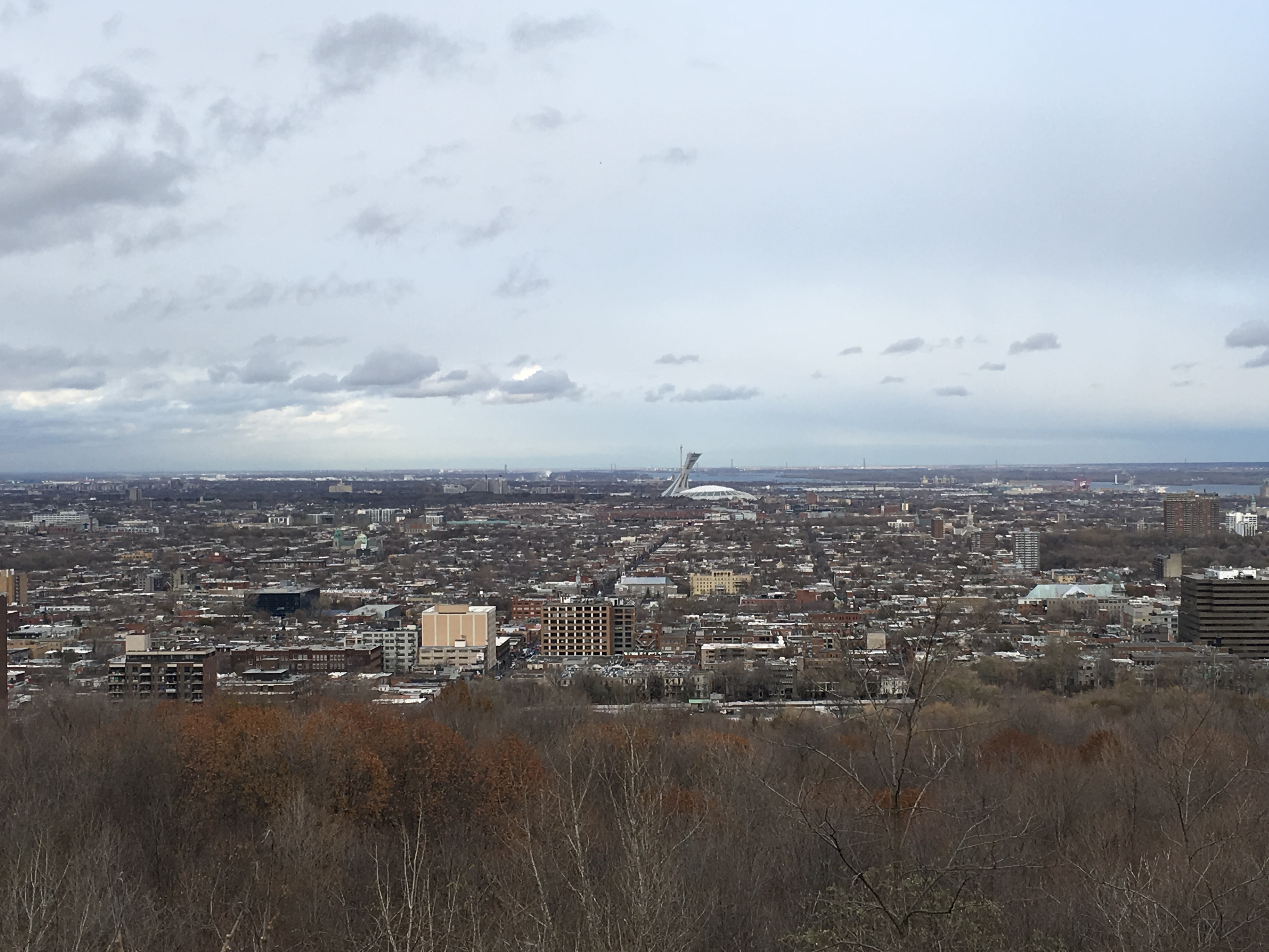 View from top of Mt. Royal. The Olympic Stadium can be seen on the horizon just to the right of center.