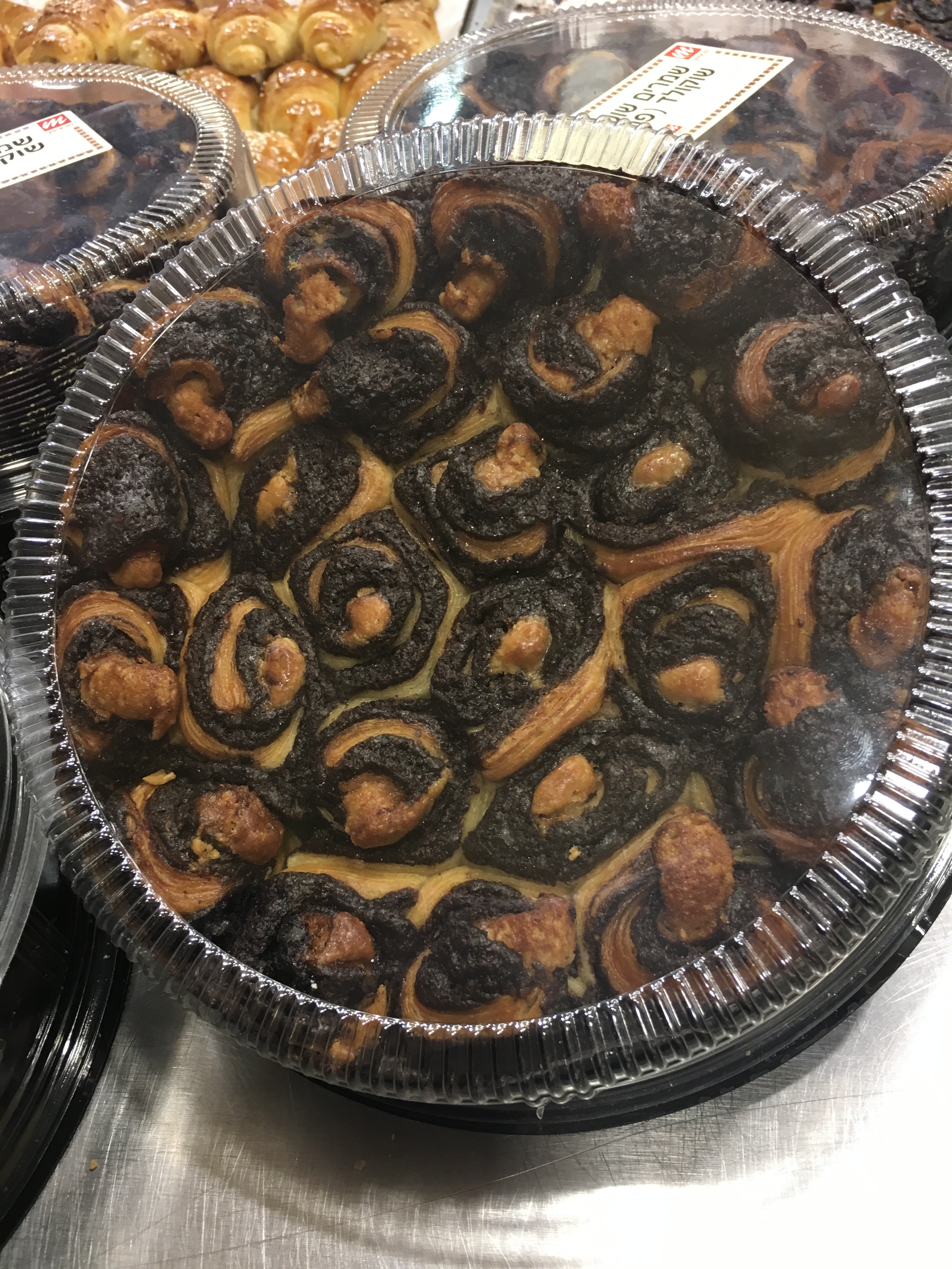 The other night I went to see an Israeli film called “The Baker from Berlin” and this was one of the specialities featured, pull-apart chocolate rugelach that made my mouth drool. Now I saw it at Marzipan bakery, and we bought some for Shabbat!