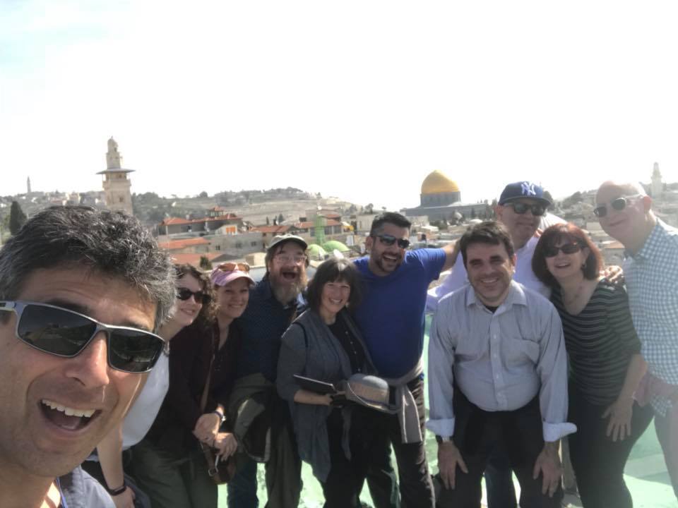 A view of our group with Al Aqsa behind us, roof of Austrian Hospice (Uri Feinberg, and Rabbis Adena Blum, Michele Paskow, David Edleson, Me!, Brian Leiken, Mark Kaiserman, Dennis Ross, Debbie Zecher, and Don Goor)