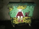 A collection of tzedakah boxes on the wall outside the cemetery (euphemistically called a Beit Chayim, a House of Life). Tzedakah boxes were also planted all over town like skinny mailboxes with slots (like the tall yellow one in the photo).